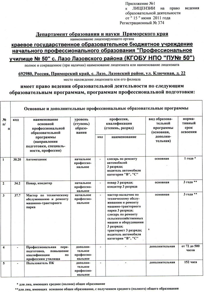 2002 год – «Лазовское профессиональное училище № 50» переименовано в ГОУ НПО «ПУ № 50»;