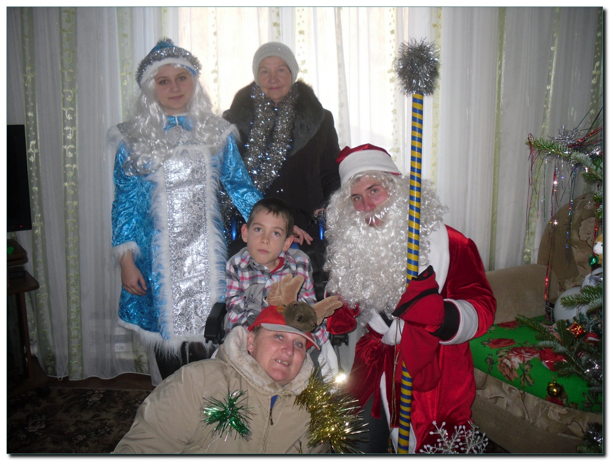 Ребята в костюмах Деда Мороза и Снегурочки посетили инвалидов на дому с небольшой праздничной программой, подарили детям сладкие подарки и мягкие игрушки.