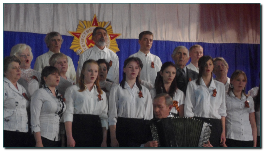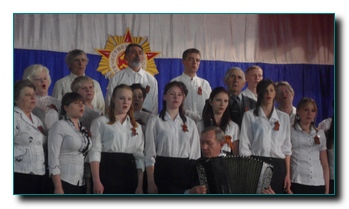 И вот 5 апреля зрители заполняют зал, еще чуть - чуть и концерт начнется. Занавес закрыт, на сцене что-то происходит. Наконец, занавес открывается и перед зрителями предстает сводный хор. Выступление начинается с выразительного рассказа стихотворения «А может, не было войны», и под аккомпонемент баяниста хор исполняет попурри из военных песен.