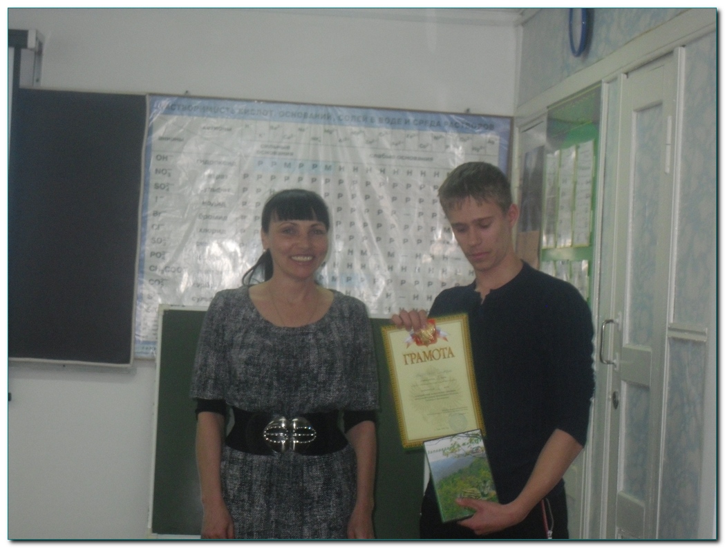 Подведены итоги заочной экологической олимпиады. Из 10 работ старшей возрастной группы Дмитрий занял 1(первое) место, Татьяна 2(второе) место. 31 марта состоялось награждение участников,